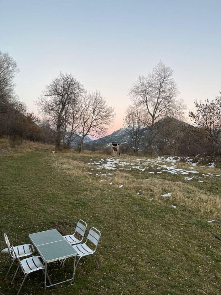 Nous sommes actuellement sur un terrain agricole à la sortie de Briançon, mais nous ne pouvons pas y rester pour l’hiver en raison des risques de chutes de neige.