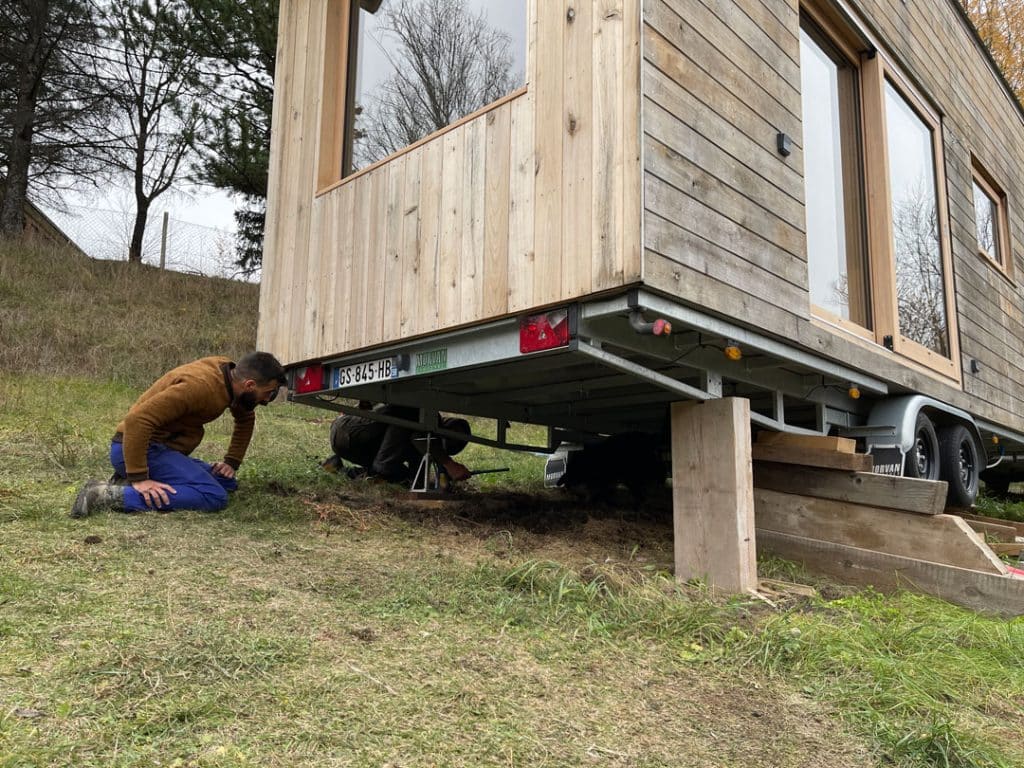 Nous avons mis 15 mois à autoconstruire notre tiny house et 6 mois à trouver un terrain qui répondait à des critères assez contraignants (notamment se situer, d’une part à moins de 30 minutes à vélo d’une gare et, d’autre part, sur un versant ensoleillé en montagne). Ces 6 mois de recherche n’ont pas été faciles pour le moral, et on a souvent pensé qu’on n’y arriverait pas.