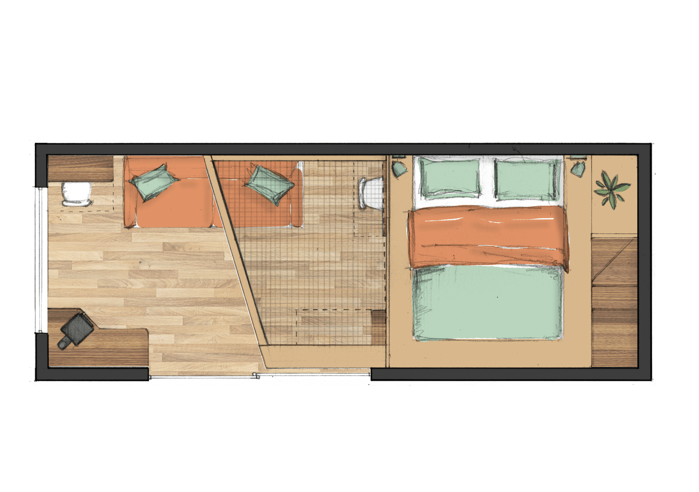 Nous n’avions pas du tout envie d’acheter des plans tout faits, car le sur-mesure permet justement de vivre plus confortablement dans 16 m2.