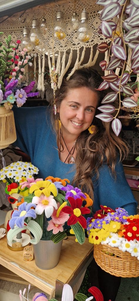 Maintenant, parlons concret. Comment on crée des fleurs en fil chenille depuis un camion ? C’est toute une organisation, croyez-moi.
